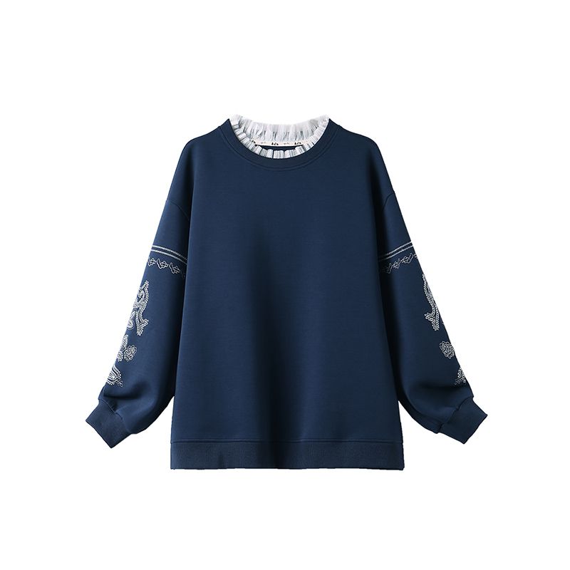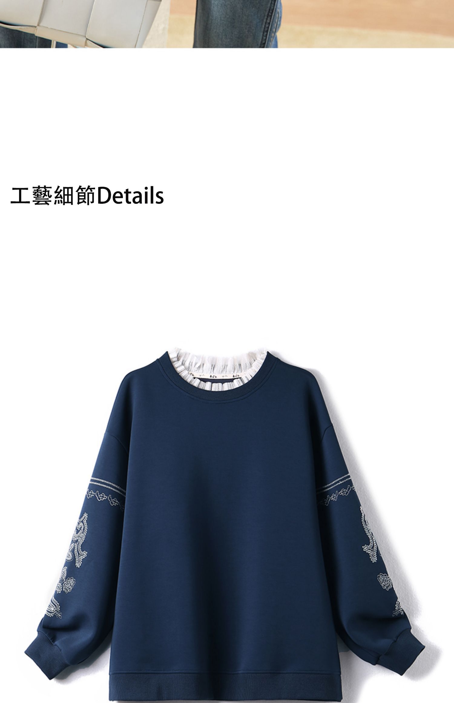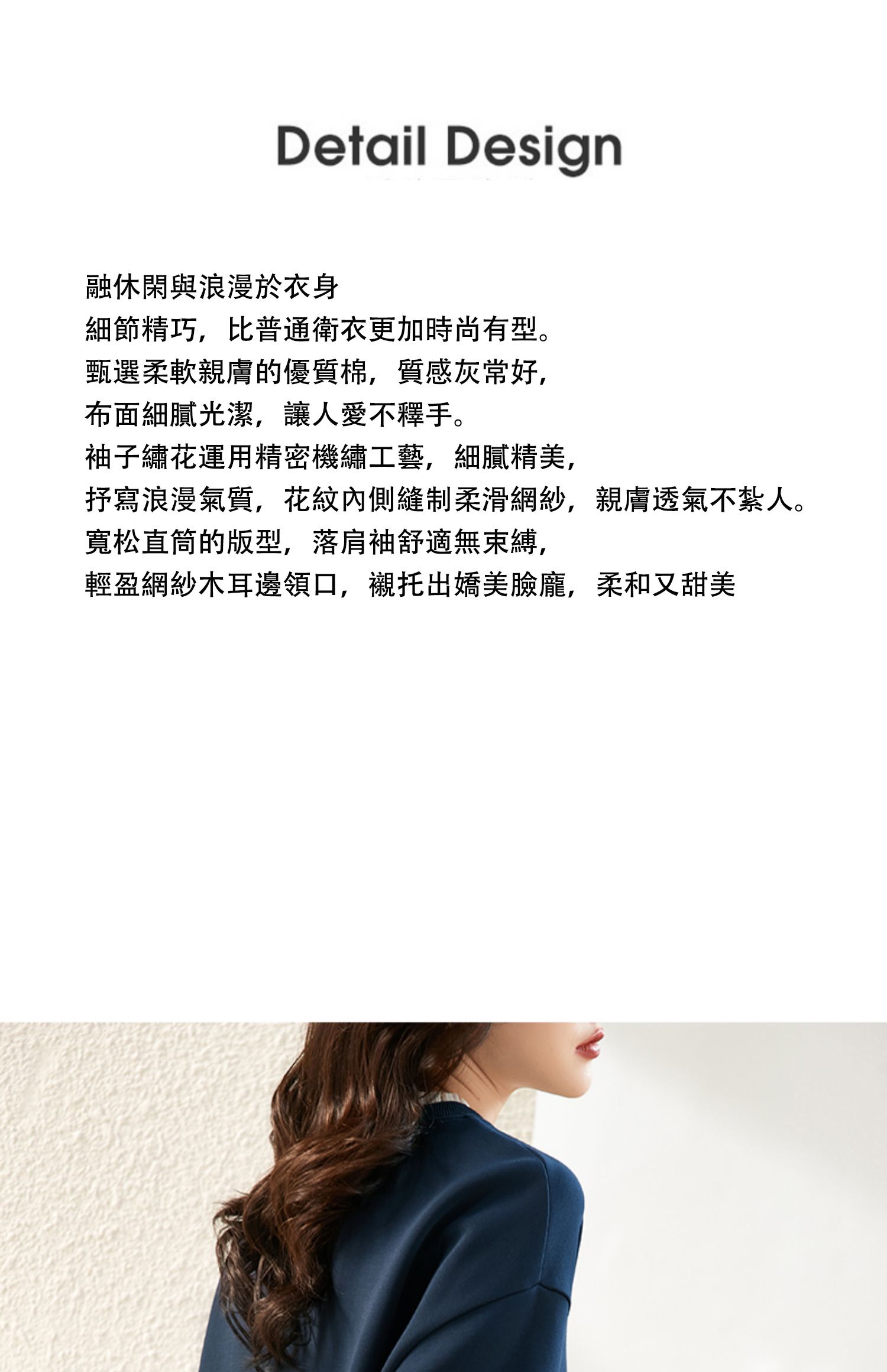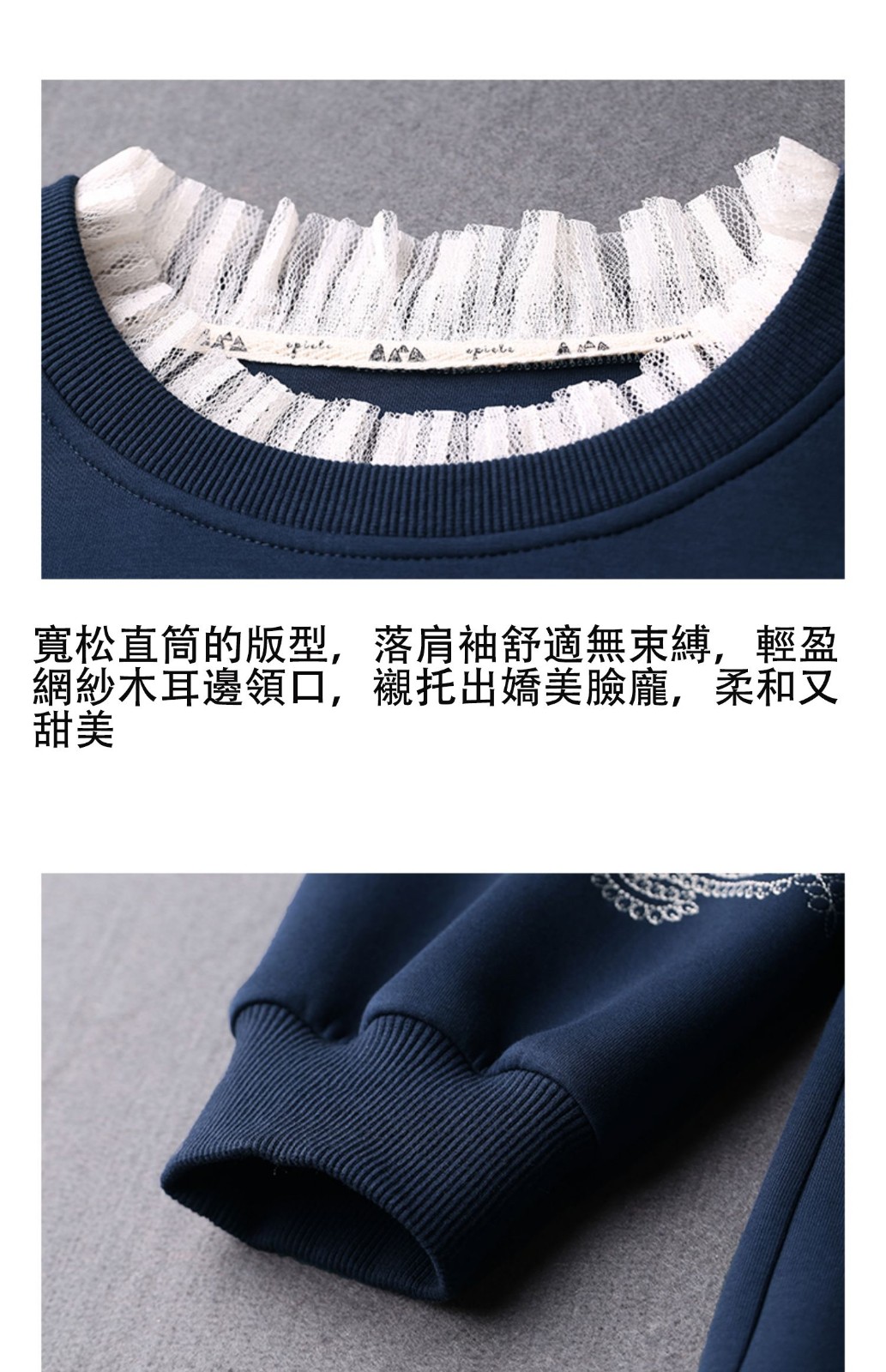 【日本の蕾絲拼接圓領衛衣】優質棉繡花,質感非常好。時尚木耳邊領。寬鬆版型顯瘦遮肉,上身超有氣質。任何人都可以駕馭~