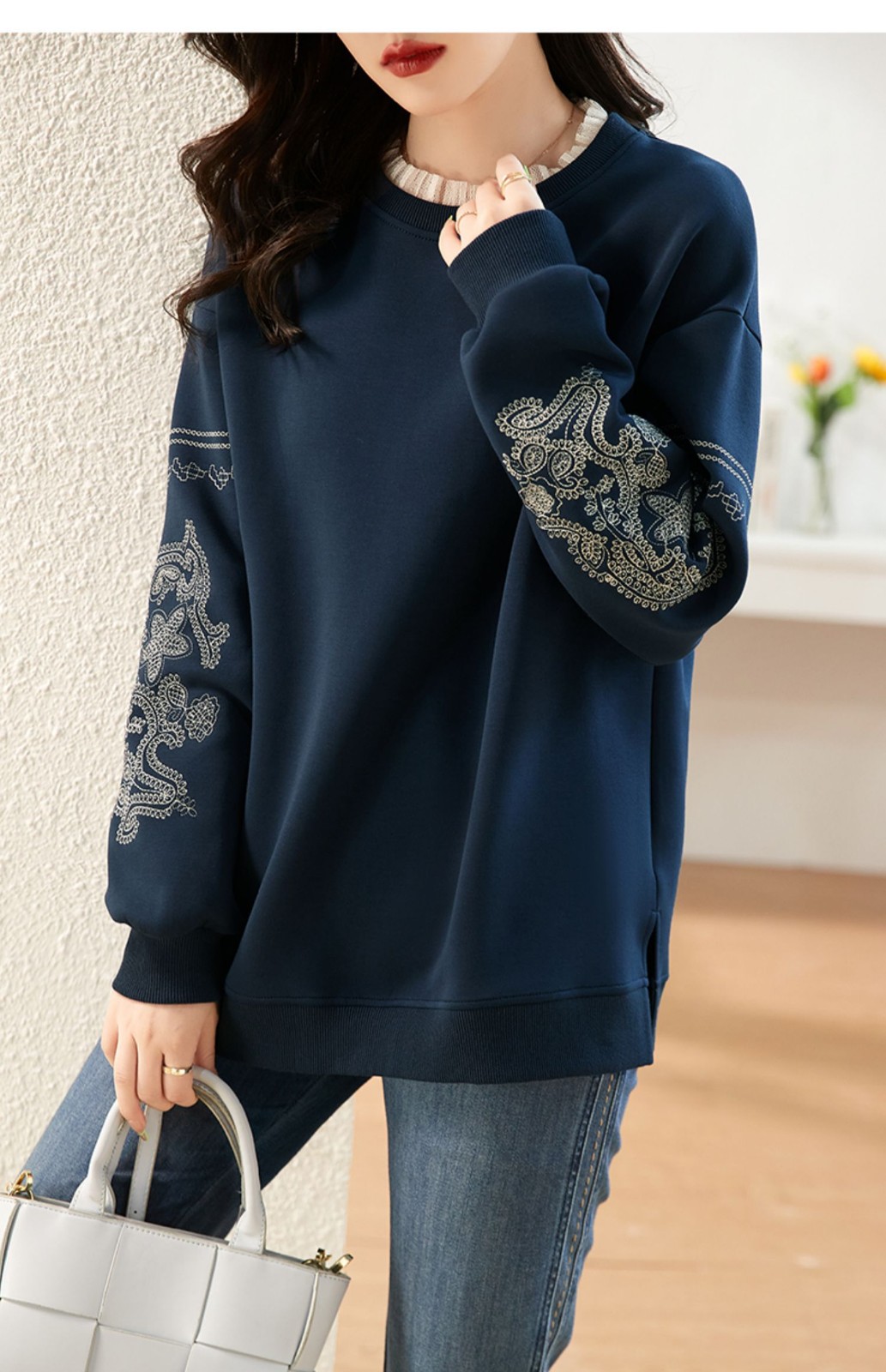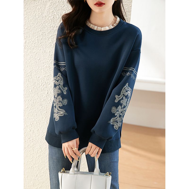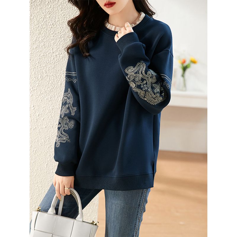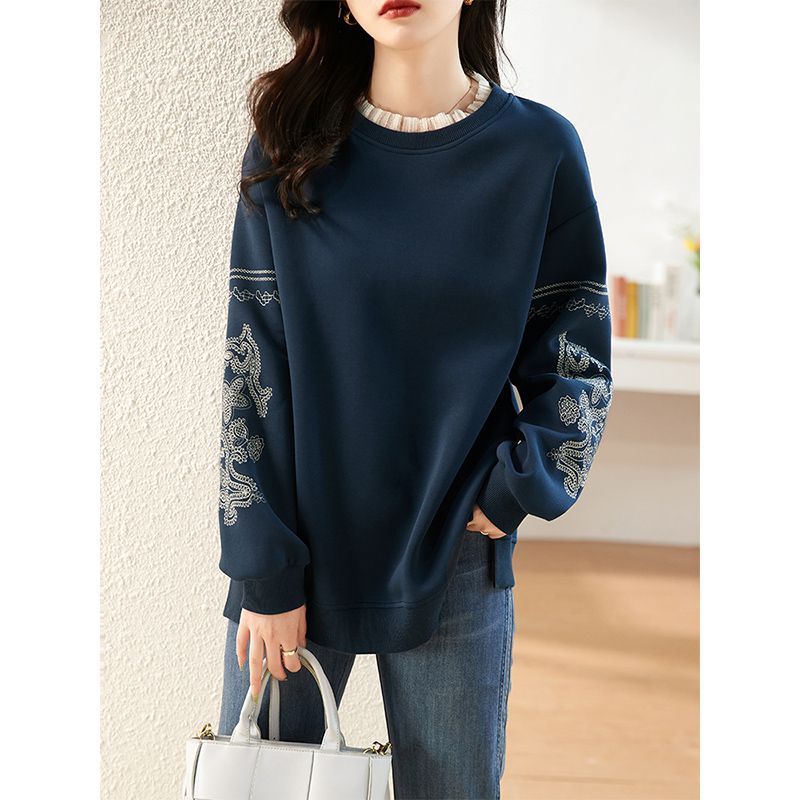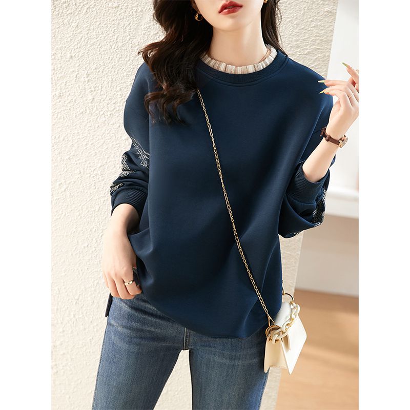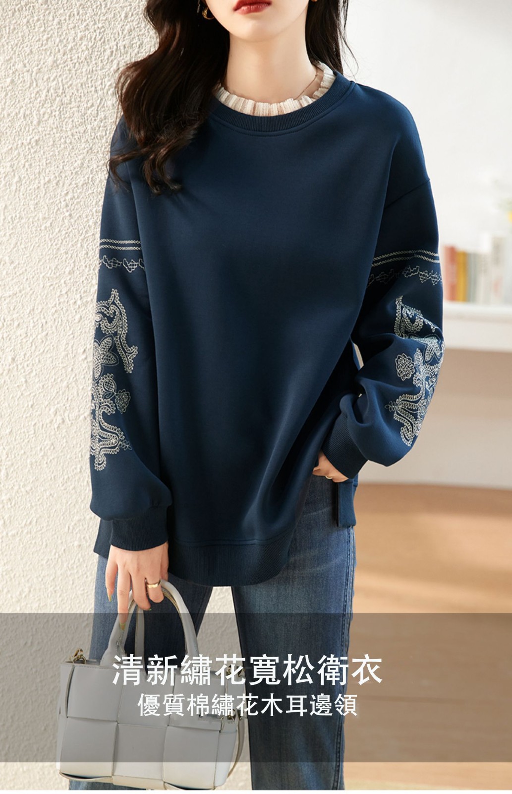 【日本の蕾絲拼接圓領衛衣】優質棉繡花,質感非常好。時尚木耳邊領。寬鬆版型顯瘦遮肉,上身超有氣質。任何人都可以駕馭~