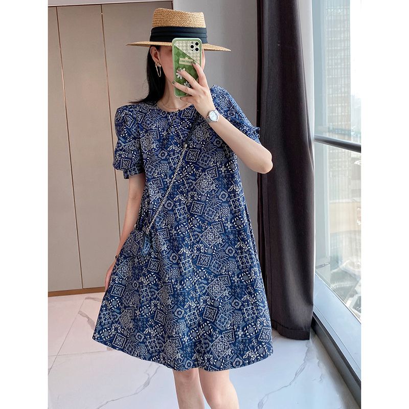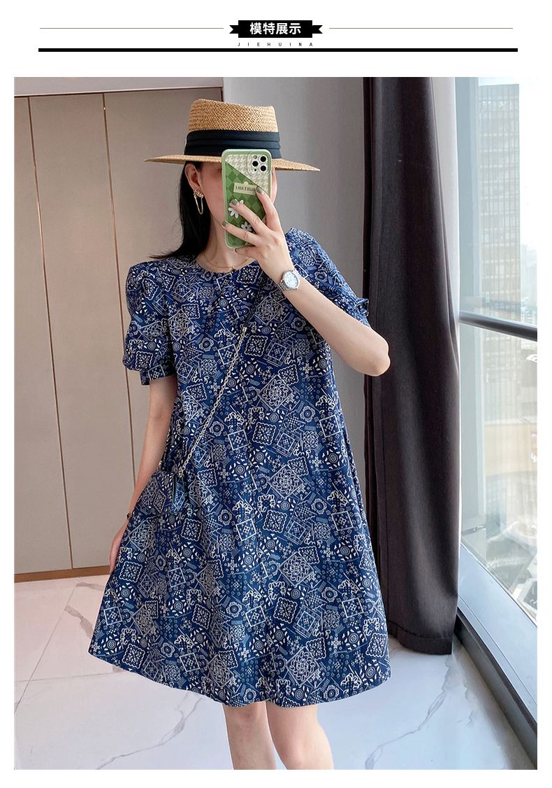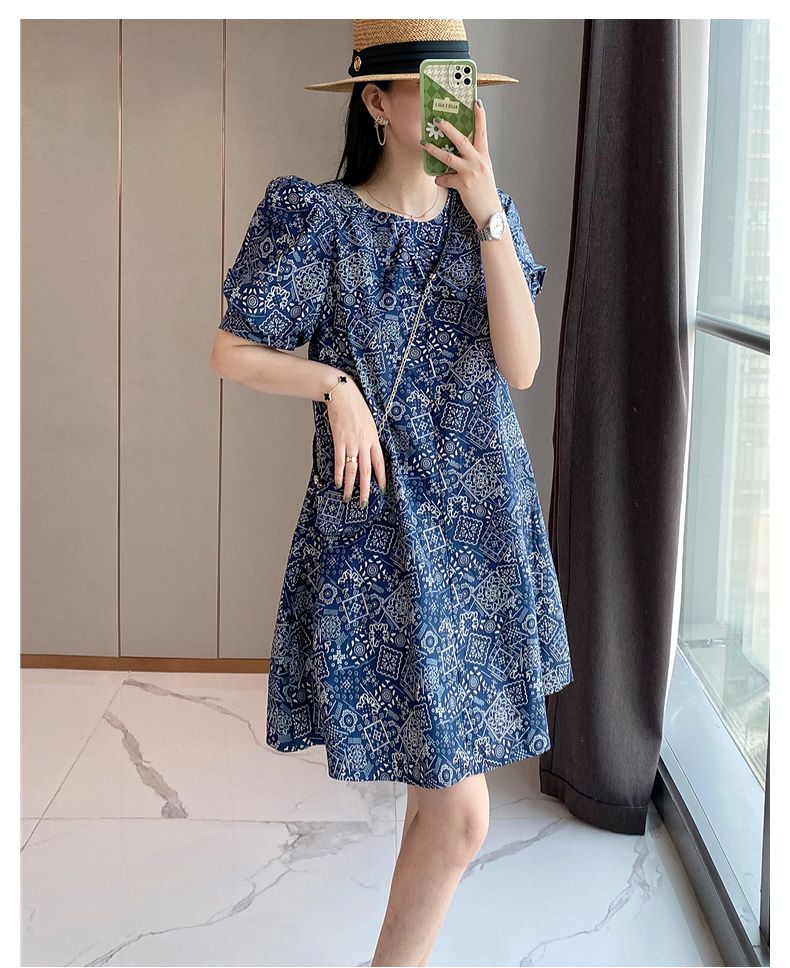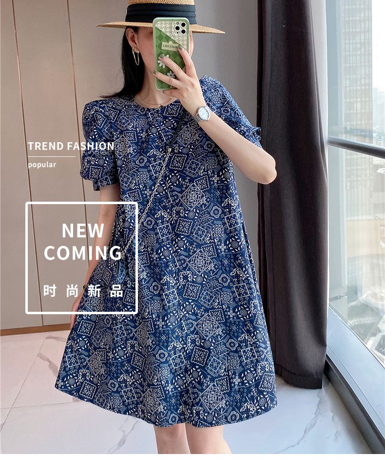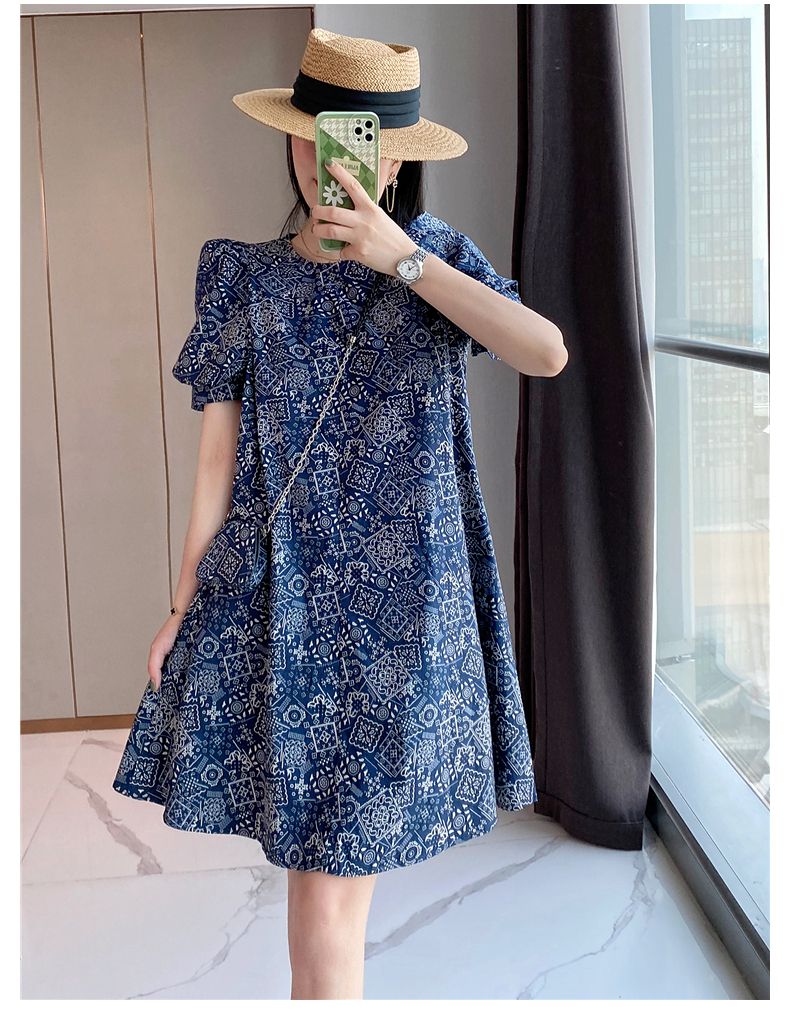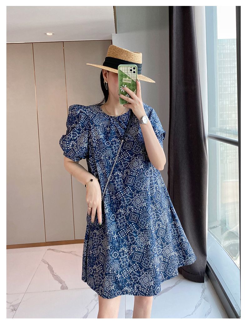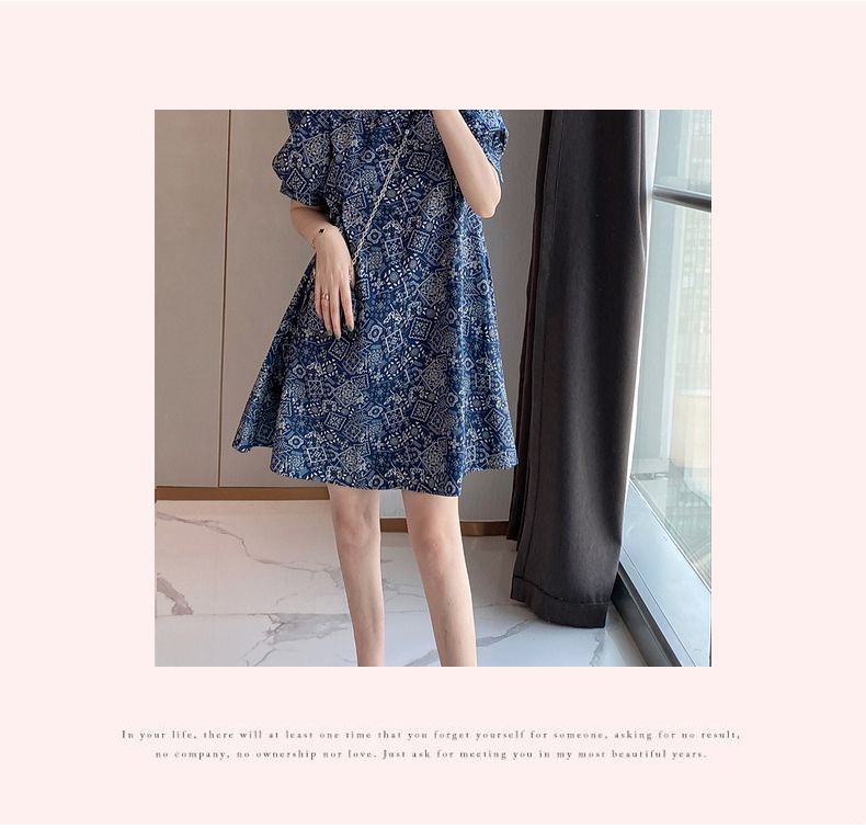 【正韓 復古藍色碎花連衣裙】款式時尚,溫柔大氣顯氣質!輕鬆穿出高級感!