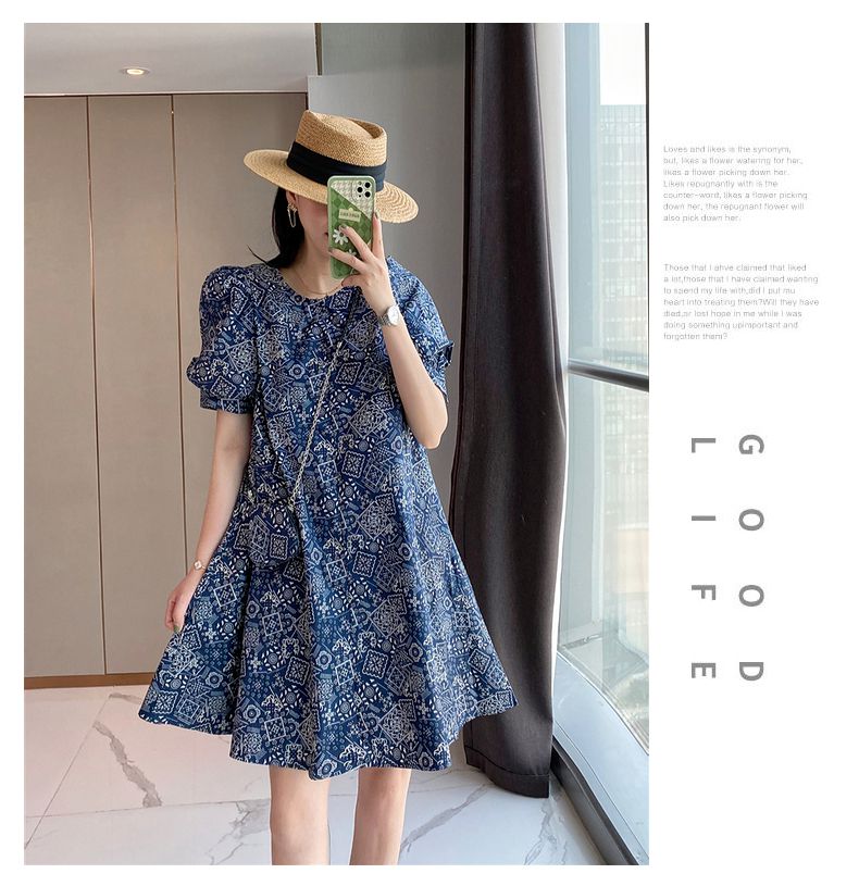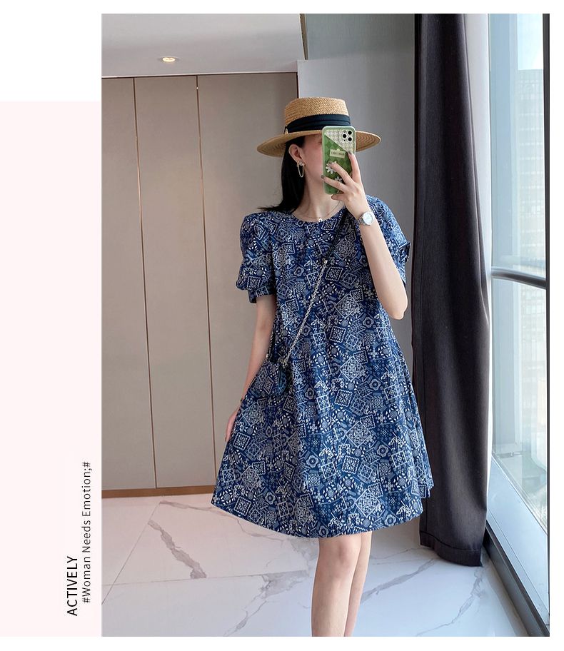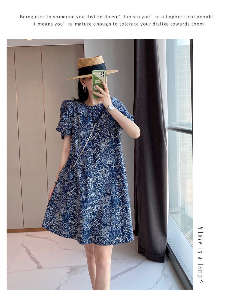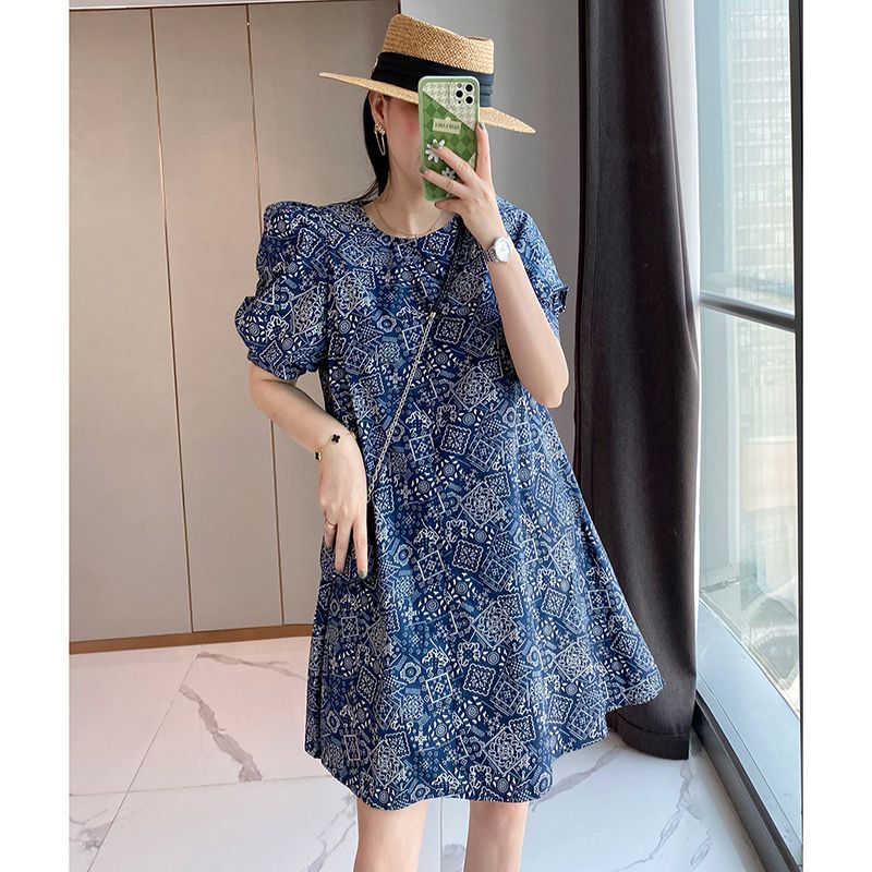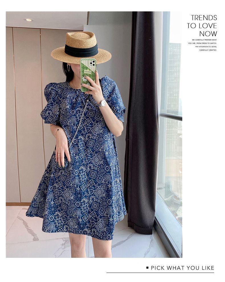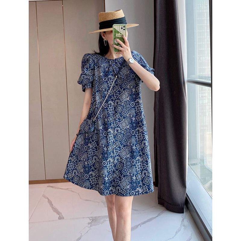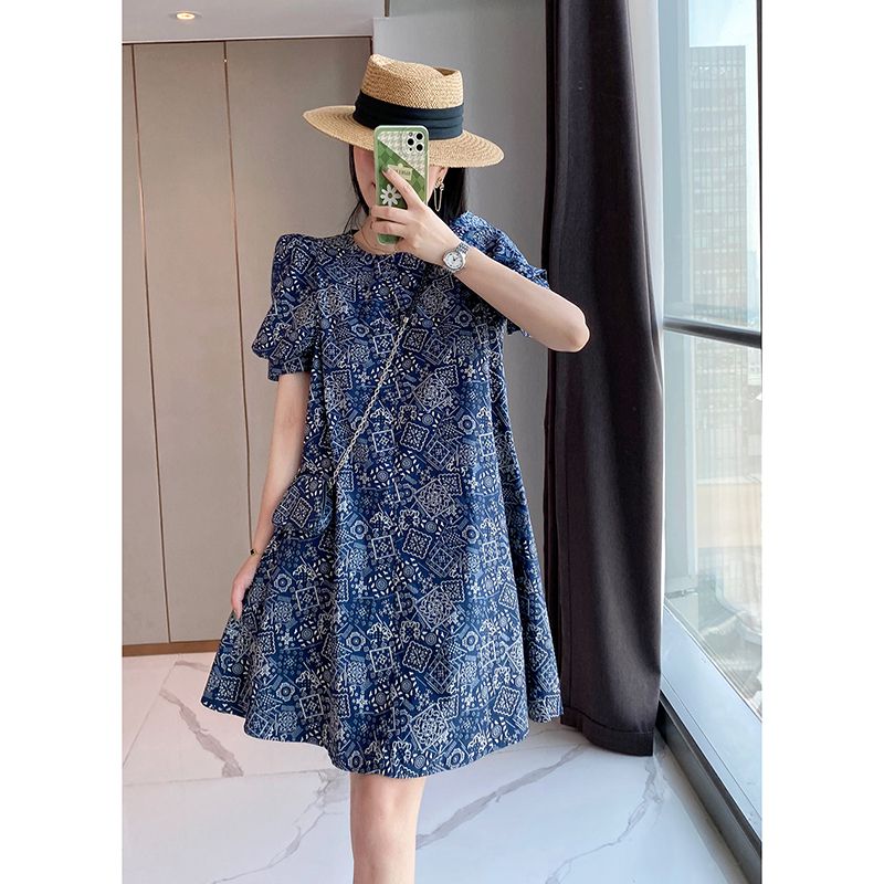 【正韓 復古藍色碎花連衣裙】款式時尚,溫柔大氣顯氣質!輕鬆穿出高級感!